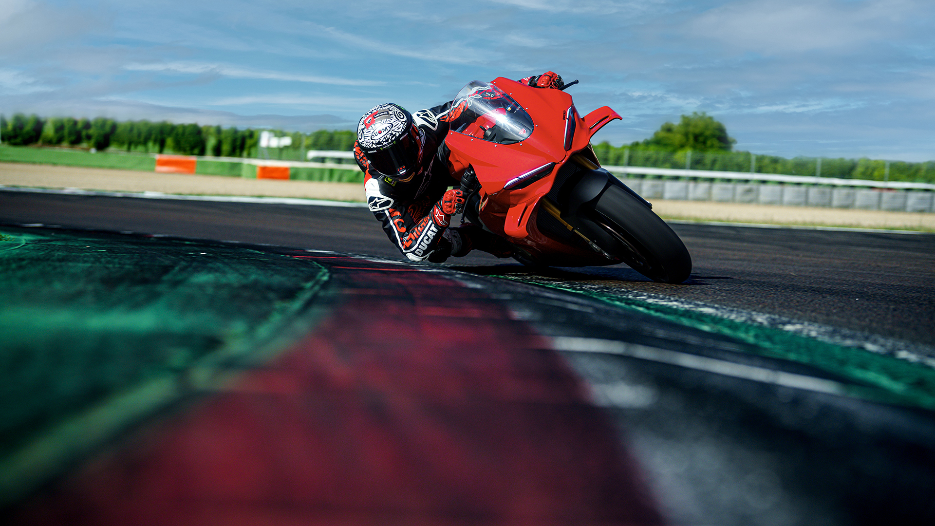 Il tutto a partire da uno stile guidato dalla ricerca dell’efficienza aerodinamica: la nuova carenatura riduce infatti del 4% la resistenza aerodinamica, con lo scopo inoltre di proteggere ancor di più il pilota in rettilineo. Le ali a doppio profilo sono integrate nel frontale, mantenendo invariato il contributo in termini di deportanza rispetto al modello precedente. L’arretramento del bordo d’attacco della carenatura rispetto alla ruota anteriore promette di rendere la moto più agile nei cambi di direzione ad alta velocità, mentre il miglioramento delle forme del parafango e del convogliatore a monte dei radiatori aumenta l’efficacia dell’impianto di raffreddamento, in particolare del radiatore dell’olio. Completamente riprogettato anche il gruppo ottico anteriore, con doppio DRL a V. Infine, la presa d’aria ora è singola e centrale, nascosta sotto al cupolino, mentre il codino, più largo e lungo, aumenta l’abitabilità per il pilota.