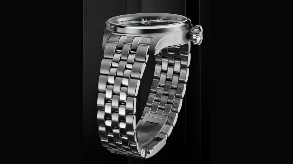 La cassa (da 13.6 mm di spessore) è protetta da un vetro zaffiro bombato con rivestimento AR e promette l’impermeabilità fino a 100 metri di profondità, mentre anche il fondello è in vetro zaffiro. Il cinturino in pelle (ma è disponibile anche la versione con bracciale in metallo) presenta dei rivetti decorativi e elegantissime impunture a vista, mentre il quadrante estremamente “pulito” è stato così progettato allo scopo di restituire un impatto estetico estremamente gradevole.