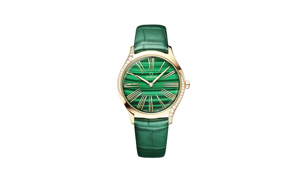 Il marchio svizzero ha presentato dell’Omega Trésor, entrambi dotati di quadrante bombato in malachite