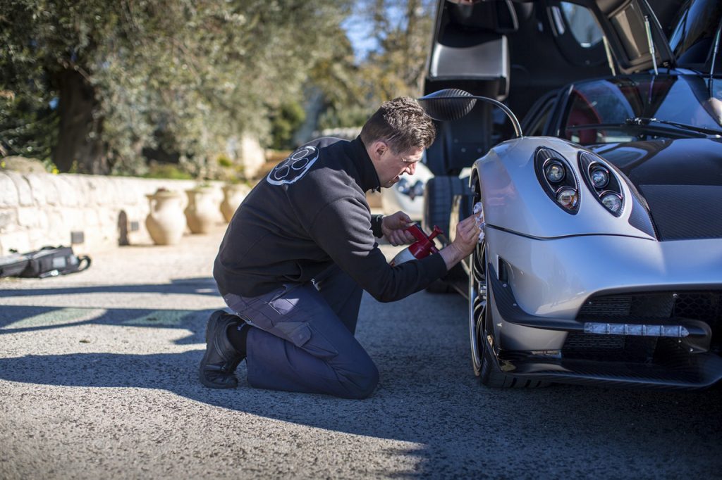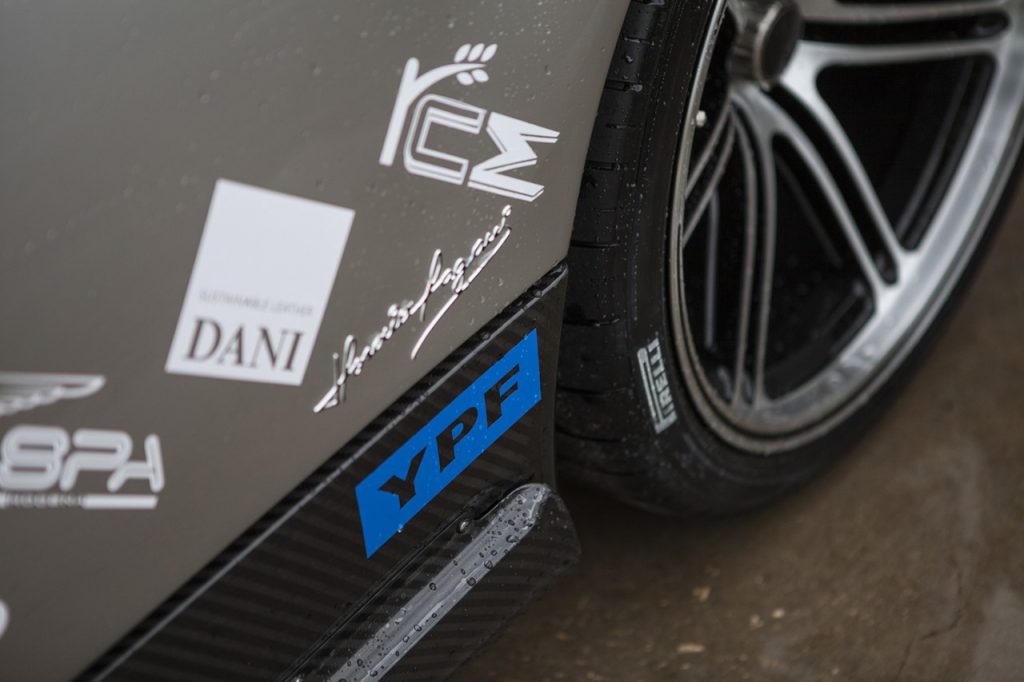 I valori prodotti dall’unità di origine Mercedes-AMG vengono inoltre “spalmati” su soli 1.218 kg di peso (ovvero ben 132 in meno rispetto alla Huayra “standard”): un risultato questo permesso dall’adozione di cerchi forgiati APP da 20 e 21 pollici di diametro gommati Pirelli P Zero Corsa 255/30 ZR20 e 355/25 ZR21 appositamente sviluppati per questa vettura (e che da soli permettono il risparmio di 9 kg di peso), dall’impiego di un inedito scarico in titanio (-7.1 kg) e dall’utilizzo di sospensioni in Avional, oltre che per il ricorso ad una nuova tipologia di fibra di carbonio del 50% più leggera e del 20% più resistente rispetto alle tradizionali componenti in CFRP.