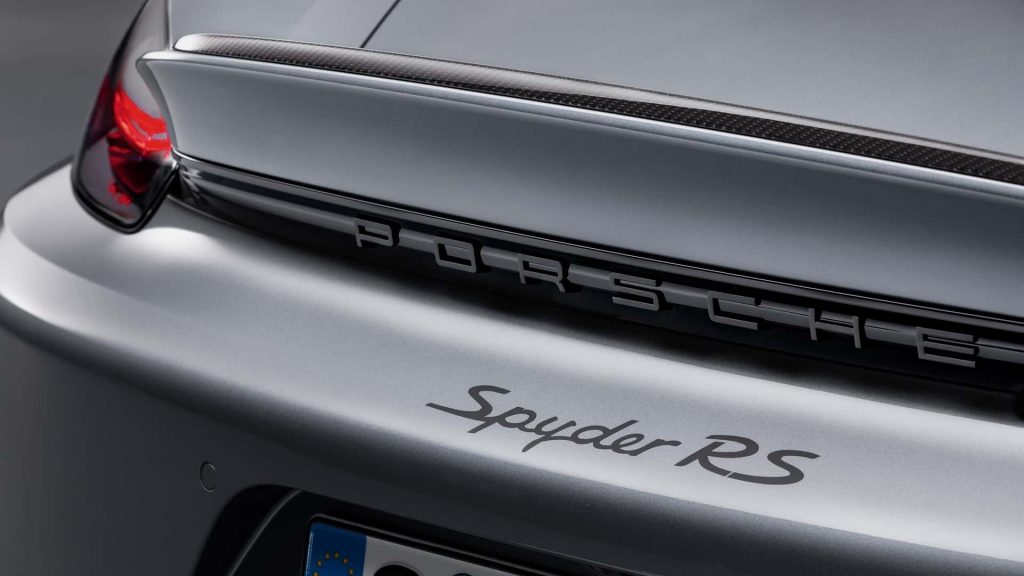 In esclusiva per chi acquista la Porsche 718 Spyder RS è disponibile un cronografo Porsche Design Timepieces lavorato artigianalmente; si tratta di un orologio di alta qualità prodotto dal laboratorio di orologeria interno di Porsche con sede a Solothurn, in Svizzera. Pensato per richiamare le caratteristiche della vettura, presenta una cassa in titanio, un quadrante in carbonio e un cinturino realizzato con pelle dei rivestimenti dell’auto. Il rotore sul retro riprende il design del cerchione della 718 Spyder RS. Il prezzo di questa vettura? In Italia si parte da 162.338 euro.