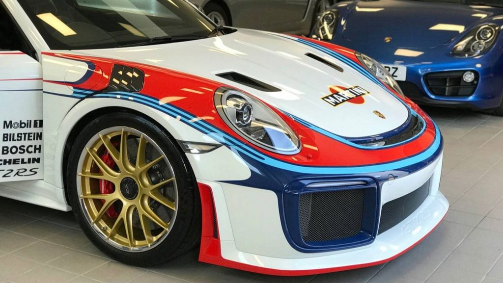 Il Porsche Retail Group GB ha deciso di rendere omaggio alla Porsche 935/78 “Moby Dick” con una speciale livrea Martini ad essa ispirata e apposta sulla Porsche 911 GT2 RS, che incrementa così il suo spirito sportivo grazie alla tradizionale livrea da corsa in rosso, bianco e blu.