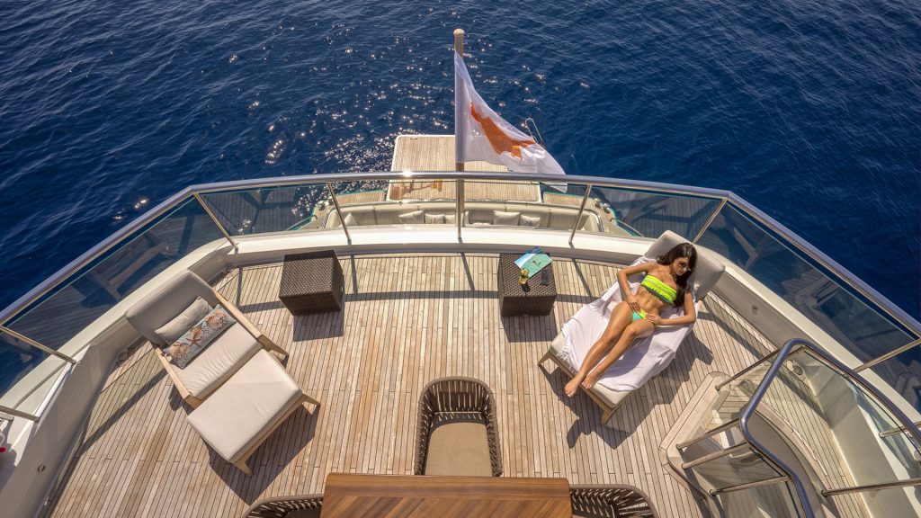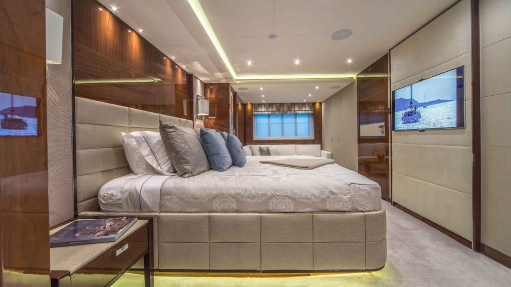 In grado di accogliere al suo interno sino a 10 ospiti (che trovano spazio all’interno di un totale di cinque cabine, di cui due cabine VIP, altrettante doppie e una master suite) più un equipaggio di sette uomini, il Princess Yachts Anka è dotato di una jacuzzi per sei persone, di un beach club con doccia e di un garage che, all’occorrenza, può essere trasformato in una piattaforma per le attività acquatiche volta a permettere l’estensione del beach club.