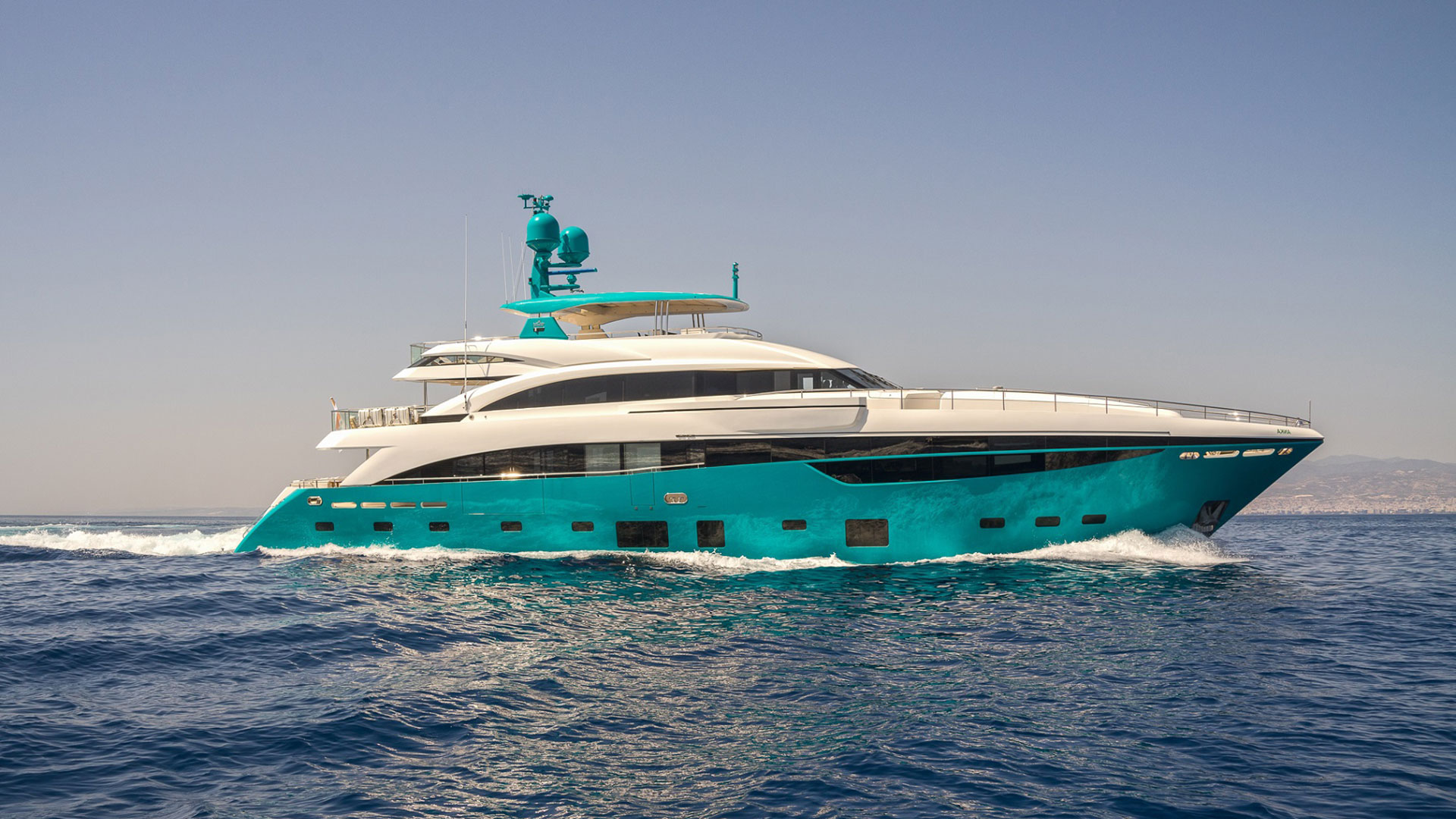 Lanciato nel 2015 e lungo 40 metri, il Princess Yachts Anka è un superyacht la cui progettazione è stata affidata al team interno del costruttore inglese e che si caratterizza per via di una struttura esterna con colorazione bicromatica in bianco e verde acqua.