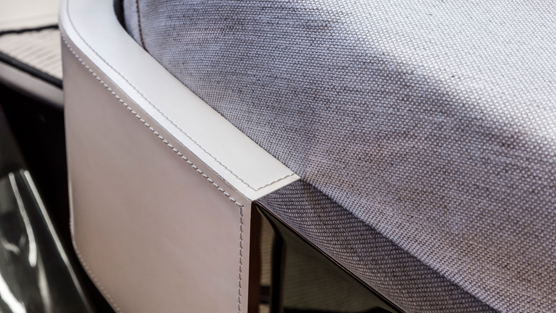 La novità è l’hard top fisso nero con dettagli in fibra di carbonio che copre tutta la zona centrale dello yacht, per riparare le aree relax dal calore e dalle intemperie. Il suo design prevede dei maniglioni laterali in acciaio che fungono da tientibene e l’opzione di integrare nella struttura l’aria condizionata. Con l’aggiunta di tendalini è possibile coprire l’area del pozzetto e la lounge di prua, creando un’unica zona coperta lungo tutta la barca, che va da poppa a prua.
