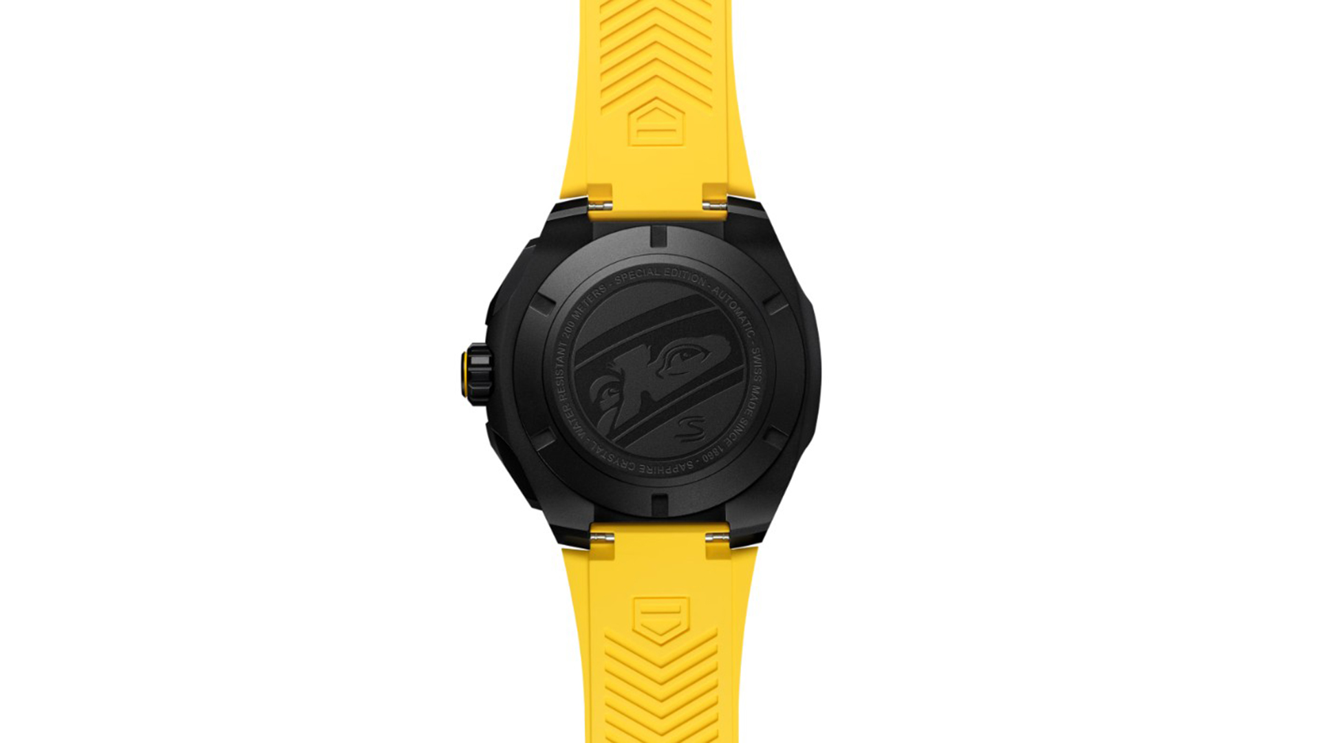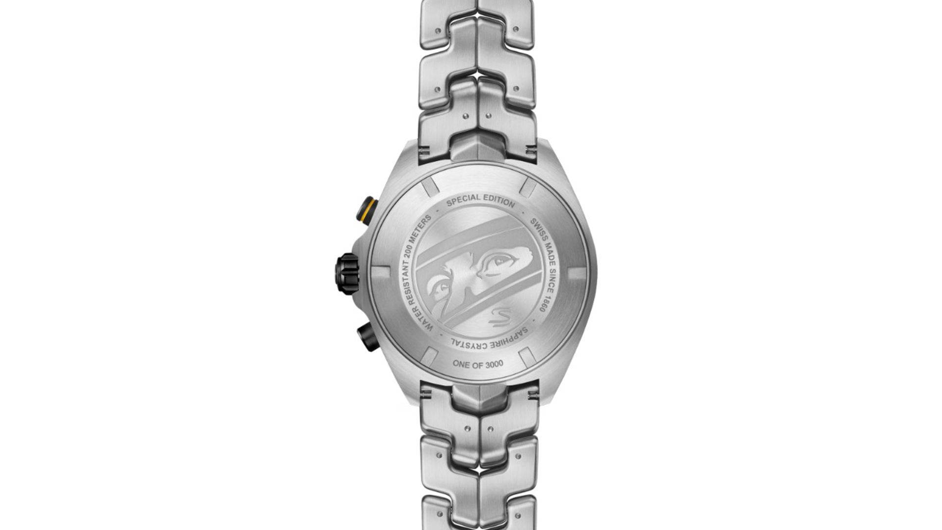 Il primo presenta un calibro 16 automatico con frequenza del bilanciere pari a 28.800 alternanze (4 Hz) da 56 ore di riserva di carica (nonché impermeabile fino a 200 metri di profondità) con cassa da 44 mm e dotato di corona in titanio grado 2, stesso materiale usato anche per il fondello, che è di tipo liscio e con rivestimento in DLC nero. Anche il corpo della cassa è in titanio e con rivestimento DLC in sabbiatura. Il quadrante, spazzolato e con effetto soleil, è di colore nero e giallo e mette alla vista – tra le altre cose – la doppia ‘S’ di ‘Senna’ e i colori del casco del campione, ovvero quelli della bandiera brasiliana, nonché il datario alle ore 3 e la scritta ‘Senna’ all’inizio della scala tachimetrica. A fare il paio a codesta dotazione troviamo un cinturino in caucciù di colore giallo con fibbia ad ardiglione (sabbiata DLC) nera. La referenza è CBZ2081.FT8092, mentre per metterselo in collezione l’importo necessario è di 5.750 euro. Dulcis in fundo: anche il fondello richiama il leggendario Ayrton, presentando incisa l’effige del Campione e mettendo alla mostra il suo sguardo attraverso il casco.