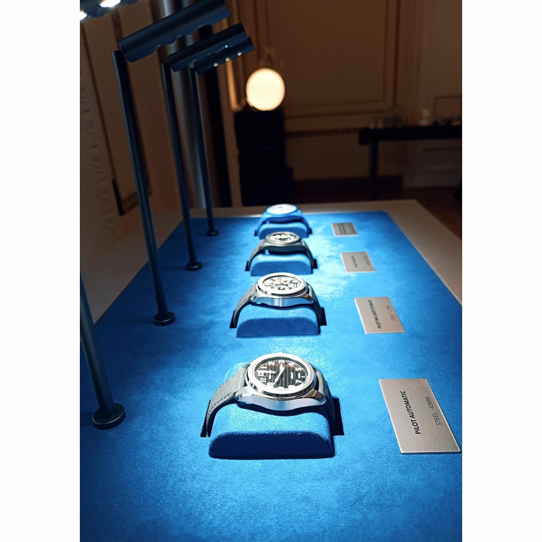 In occasione del 160° anniversario della Maison, il Pilot Big Date Flyback si presenta in una versione monocromatica blu, con cassa, quadrante e cinturino coordinati. Realizzata in ceramica microsabbiata in una nuova tonalità di blu intenso, la cassa da 42,5 mm è completata da una corona in titanio e pulsanti rettangolari. Le lancette e i grandi numeri arabi sul quadrante texturizzato sono rivestiti di materiale luminescente, per garantire una leggibilità ottimale in qualsiasi condizione. Il Pilot Big Date Flyback Edizione 160° Anniversario è animato dal calibro El Primero 3652. Questo movimento vanta le funzioni Grande Date e Flyback. Il datario è a due cifre e un meccanismo brevettato consente il cambio di data in soli 0,007 secondi. Fedele alla tradizione dei cronografi per piloti, la funzione Flyback consente di azzerare e riavviare il cronografo con un’unica pressione e di effettuare calcoli in volo eliminando la necessità della classica sequenza di avvio-arresto in tre fasi. Il movimento, visibile attraverso il fondello in vetro zaffiro, è impreziosito da un rotore personalizzato con un emblema del 160° anniversario. Questa edizione limitata è corredata da un cinturino in caucciù blu effetto “Cordura” e da un secondo cinturino bianco effetto “Cordura”, entrambi dotati di tripla fibbia déployante in acciaio. Un pratico sistema di sostituzione del cinturino consente di cambiare il cinturino in modo facile e veloce.