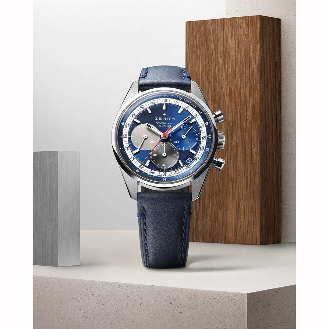 Una collezione che si fregia soprattutto della presenza della ceramica blu (ricordiamo infatti che il nome Zenith fa riferimento al cielo notturno luminoso e pieno di stelle): un cromatismo che negli anni è divenuto simbolo stesso della Manifattura elvetica. E per demarcare questo concetto viene portato al debutto il cromatismo blu Zenith: una nuova tonalità che viene presentata in simultanea su tre dei cronografi più amati del Brand (a cui si aggiunge un quarto modello, ovvero un bellissimo vintage) e disponibili in edizioni limitate di 160 esemplari ciascuno, che possono essere acquistate singolarmente o all’interno di un set speciale anniversario. Tutti e tre gli orologi sono disponibili esclusivamente nelle boutique fisiche e online della Maison e presso i rivenditori autorizzati di tutto il mondo. Andiamo a conoscerli nel dettaglio.